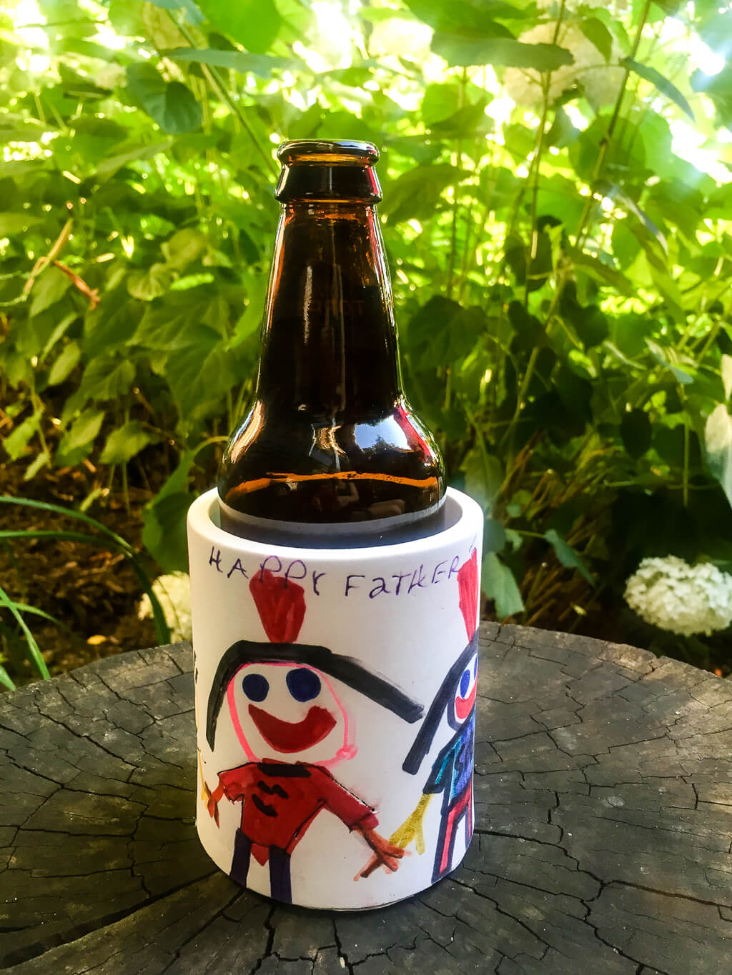 Make a DIY custom koozie drink holder to cool Dad’s bottles and cans. It’s an easy and useful DIY Father’s Day gift idea from the kids! I mean, look at this cute little drawing of daddy on his custom drink koozie…