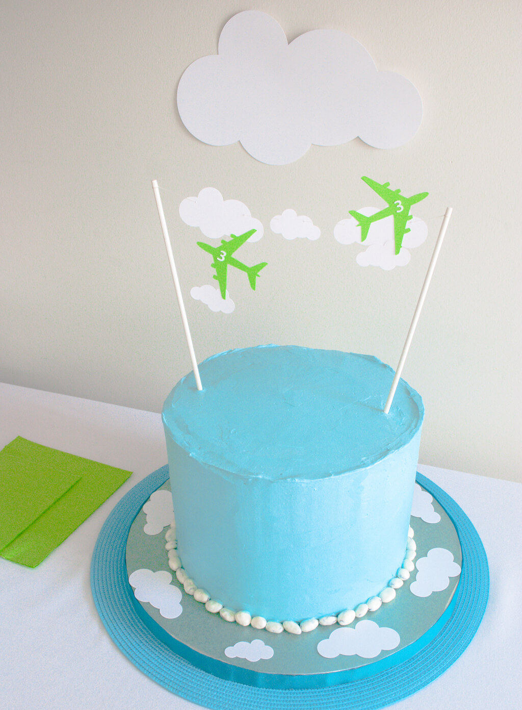 Easy Airplane Birthday Cake for an Airplane Birthday Party. Just print these free printable airplane cake toppers, cut and tie onto lollipop sticks!